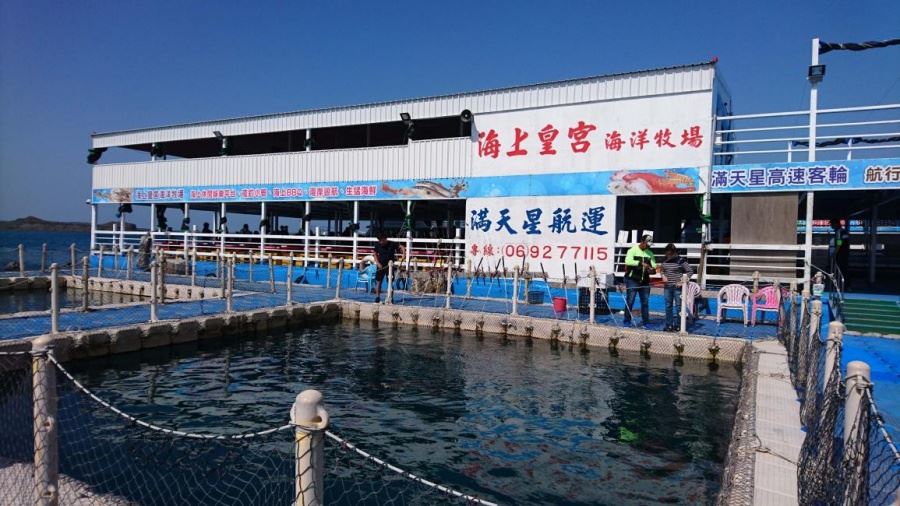 - 搭乘快艇前往海洋牧場箱網養殖區【光海田海上平台特色活動-誘釣花枝養殖生態介紹,清嘴龍占、龍膽石斑、加臘魚、海驪魚…等餵食秀,箱網海釣】→【解說箱網養殖海鱺魚等相關問題→親自釣海鱺魚感受「海中大力士」之威力及搏鬥的樂趣、趣味釣花枝比「驚聲尖叫」更刺激、更好玩、卡拉OK無限歡唱、生態觸摸池】,【風味海鮮粥】、燒烤鮮蚵吃到飽無限量供應親享漁村生活。
