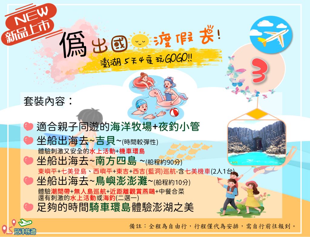 ◎旅遊主題:澎湖5天4夜套裝自由行