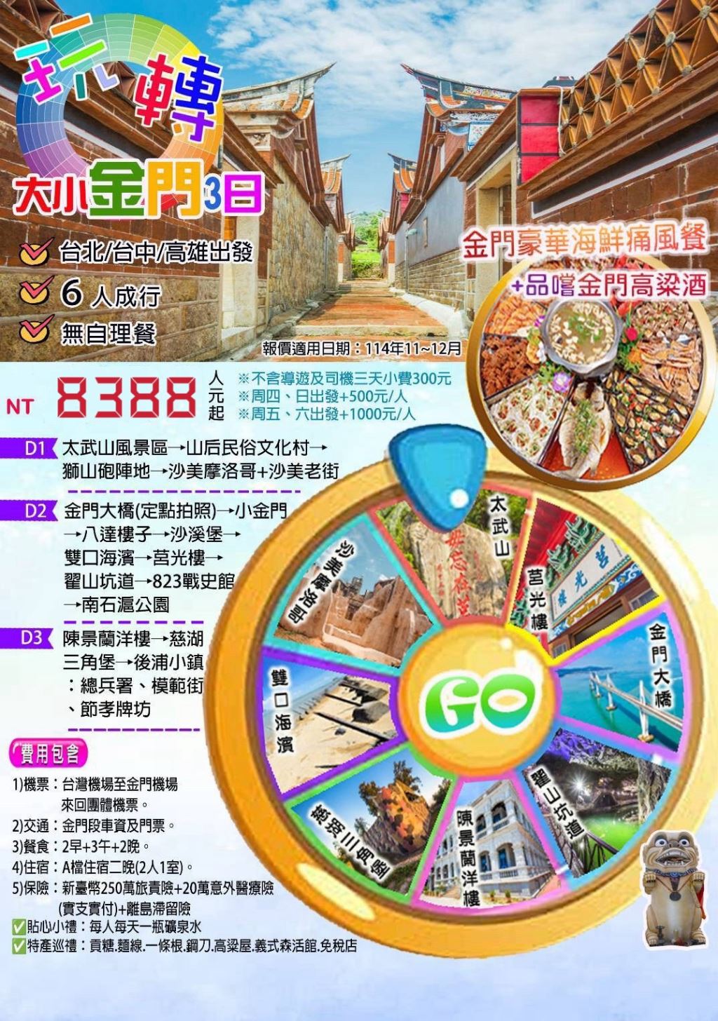 玩轉大小金門三日團體遊-$8388起-限定11-12月出發-6人成行