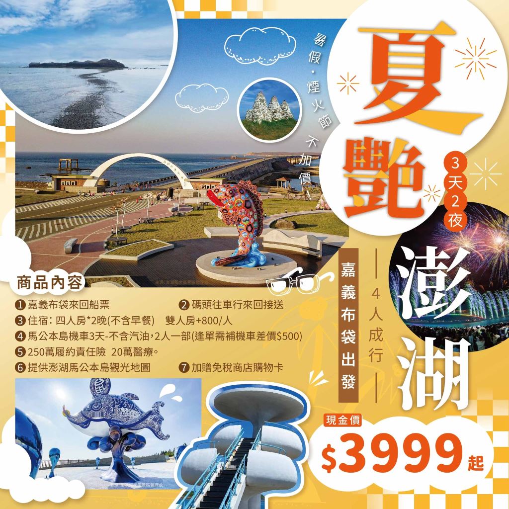 ⭐夏艷澎湖~輕旅行⭐3天2夜-只要$3999起(4-9月)